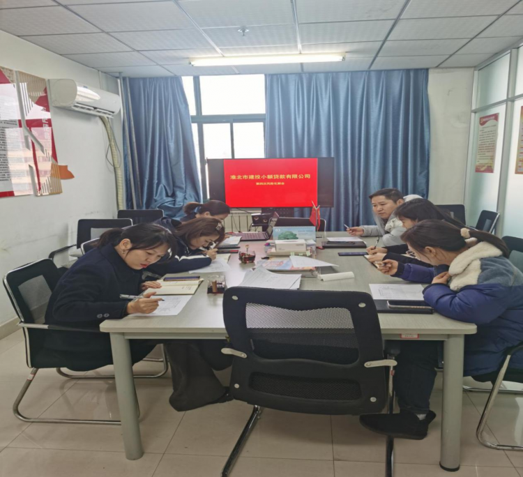 近日,淮北市建投小額貸款有限公司召開2021年第四季度風(fēng)險化解會。副總經(jīng)理趙瑩瑩主持會議,業(yè)務(wù)部、風(fēng)控部、綜合部和金控風(fēng)控部相關(guān)人員參會。
