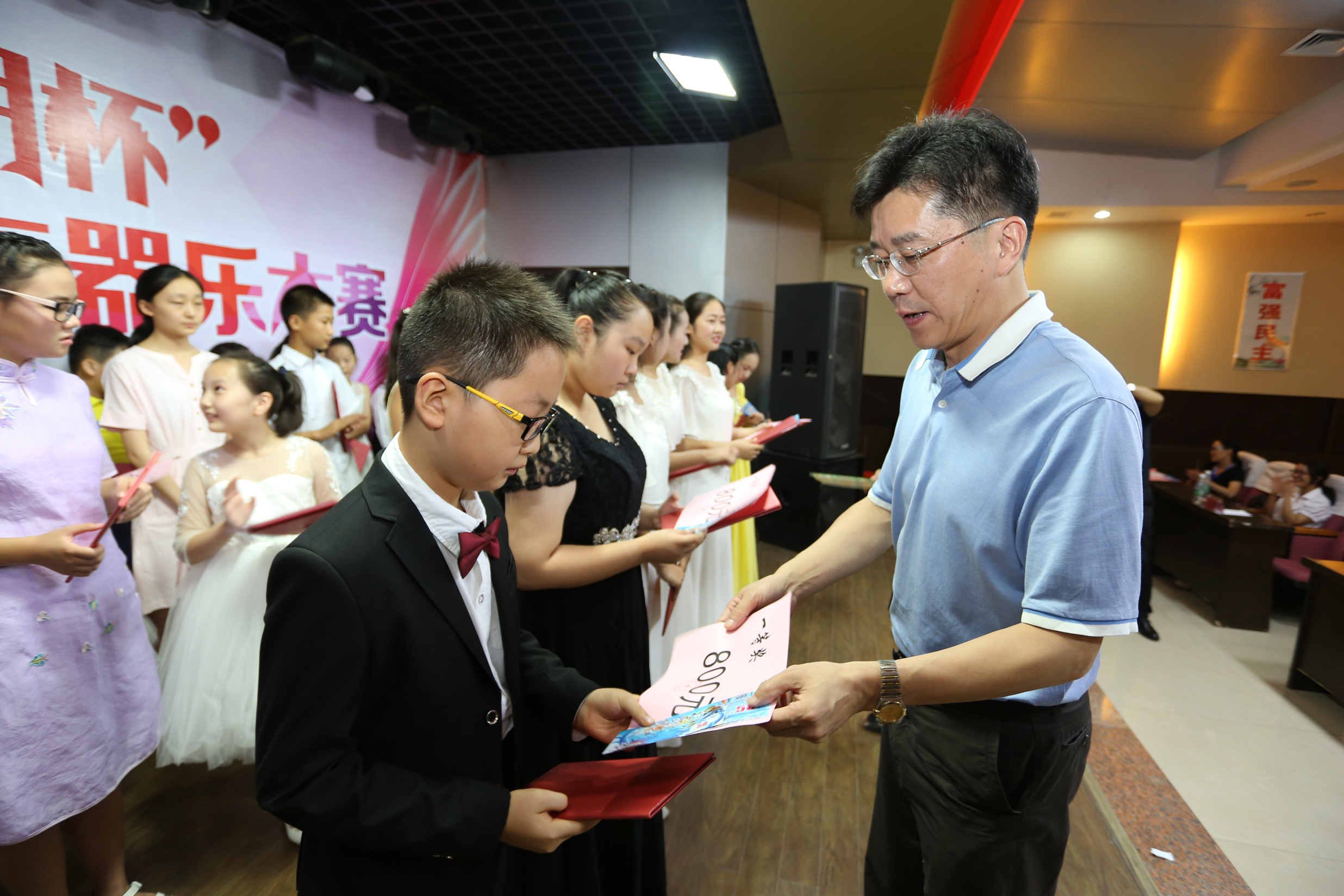 8月26日下午,“南湖杯”首屆青少年器樂(lè)大賽頒獎(jiǎng)典禮在市老年大學(xué)一樓會(huì)議室舉行?;幢笔形幕糜误w育委員會(huì)黨委委員、副主任吳文閣,淮北市建投控股集團(tuán)有限公司黨委委員、紀(jì)委書(shū)記王獻(xiàn)忠等出席頒獎(jiǎng)典禮,并為獲獎(jiǎng)選手頒獎(jiǎng)。
