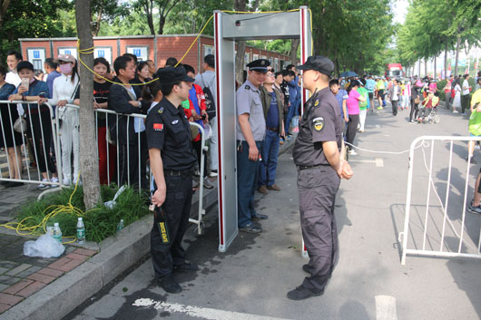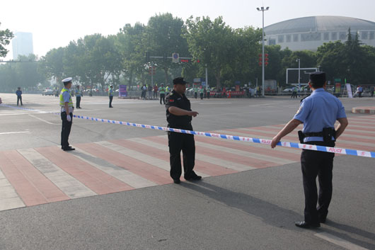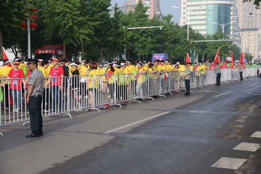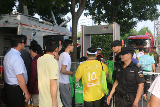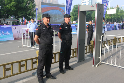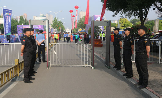 13日凌晨5:30分,負(fù)責(zé)市府廣場周邊區(qū)域的安保人員全部到崗。運動員入口安全檢查、重要部位值守、秩序維持、車輛指引、賽道沿線封閉防控等安保工作有序進行。