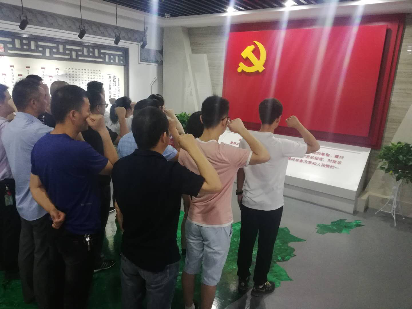 2019年6月27日上午,交投機關(guān)黨支部為慶祝建黨98周年,結(jié)合“不忘初心、牢記使命”主題教育,與融通黨支部、公交二公司黨支部,聯(lián)合前往淮北市反腐倡廉警示教育中心開展黨員警示教育及重溫入黨誓詞活動。